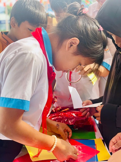 Bên cạnh đó, nhà trường tổ chức hoạt động giờ ra chơi trải nghiệm sáng tạo làm thiệp tri ân thầy cô 20/11. Trong không khí vui tươi, hào hứng, các em học sinh đã tự tay thiết kế những tấm thiệp nhỏ xinh, gửi gắm lời chúc tốt đẹp, thể hiện tình cảm chân thành dành tặng thầy cô giáo.